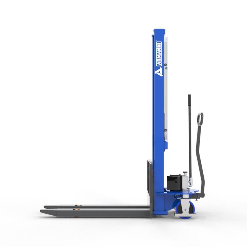 La robusta struttura e le forche fisse lunghe 1150 mm garantiscono significative portate offrendo in una versione completamente manuale una concreta alternativa ai modelli elettrici anche in caso di uso intensivo.