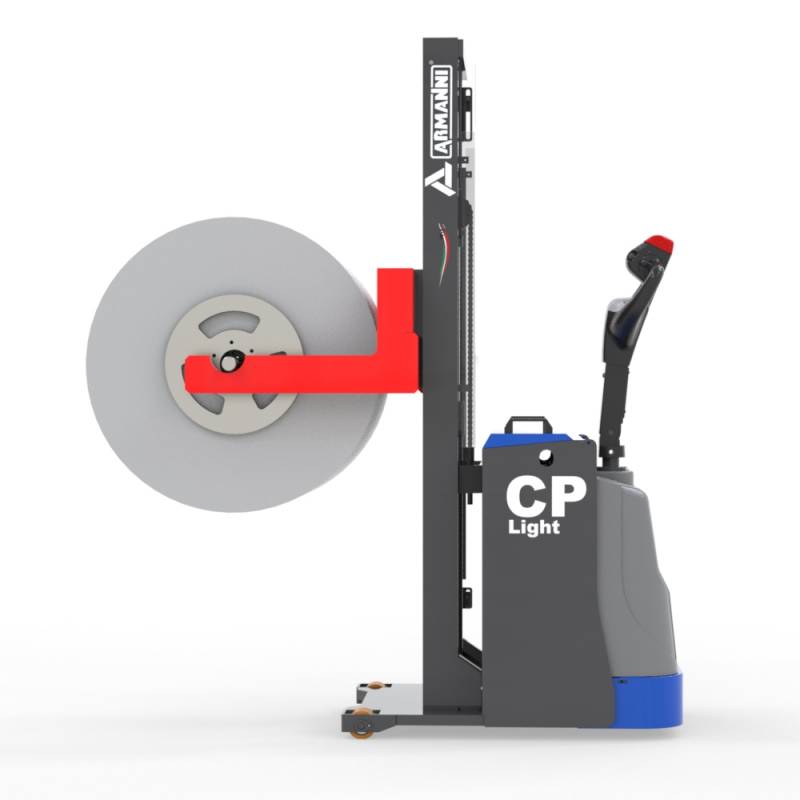 CP Light FS è un carrello full electric contrappesato ultracompatto con forche speciali sagomate a V (a sella), progettato per la presa di bobine tramite albero per il carico e scarico da macchinario. Le forche speciali a sella vengono realizzate su misura in base alla larghezza dell'albero e al diametro della bobina, rendendo di fatto CP Light FS un prodotto su misura per il carico da movimentare. Questa caratteristica contribuisce ad un miglioramento dell'efficienza, della produttività e delle condizioni di sicurezza per gli operatori.