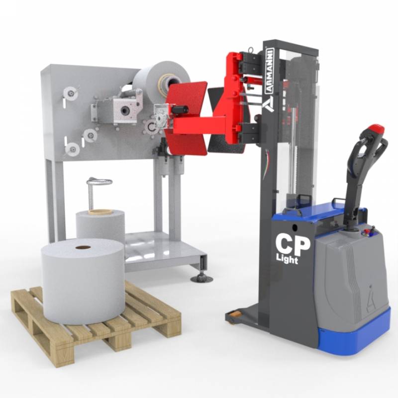 CP Light PRF-B è un carrello ultracompatto contrappesato con pinza con rotazione frontale per la movimentazione di bobine. Le dimensioni compatte di solo 1 m² d'appoggio a terra consentono la massima agilità anche negli spazi e nei corridoi più angusti. Grazie alla configurazione contrappesata, senza zanche d'appoggio anteriori, è in grado di approcciare il pallet da ogni angolazione; la pinza realizzata in base alla tipologia di bobina consente la presa della stessa, la rotazione a 360° (o in alternativa limitata da 0° a 90°) e l'inserimento in macchina.