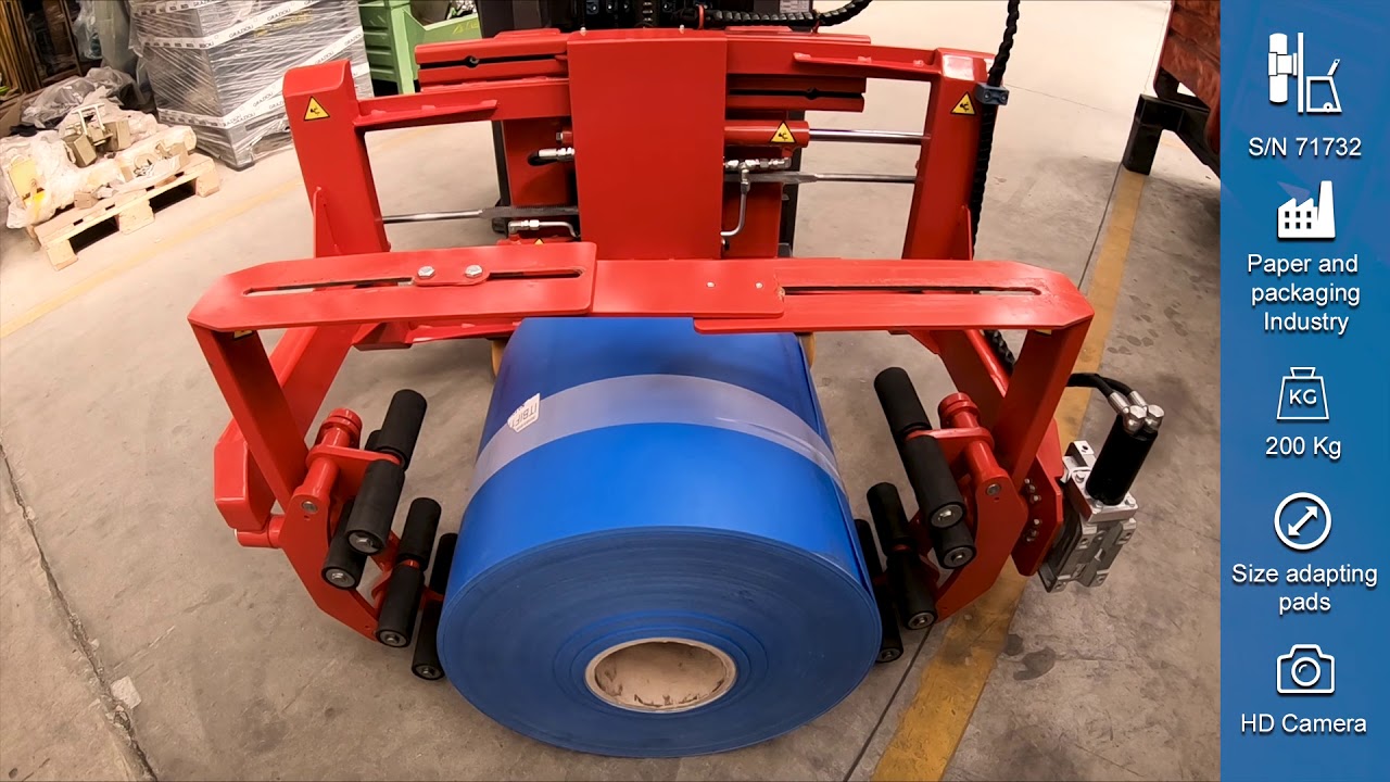 La speciale pinza a rotazione laterale è progettata per la presa, la rotazione (fino a 360°) e l'inserimento di bobine di vario genere nel macchinario avvolgitore o svolgitore.