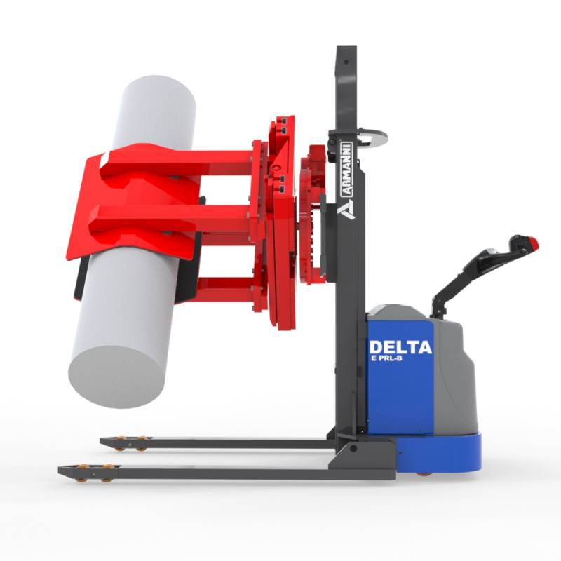 Delta E PRL-B rappresenta la più concreta risposta alle esigenze di presa e rotazione bobine con la massima ergonomia e sicurezza nel settore delle cartiere e packaging rappresentando la soluzione ideale per i lavori intensivi di carico e scarico bobine da macchinario.