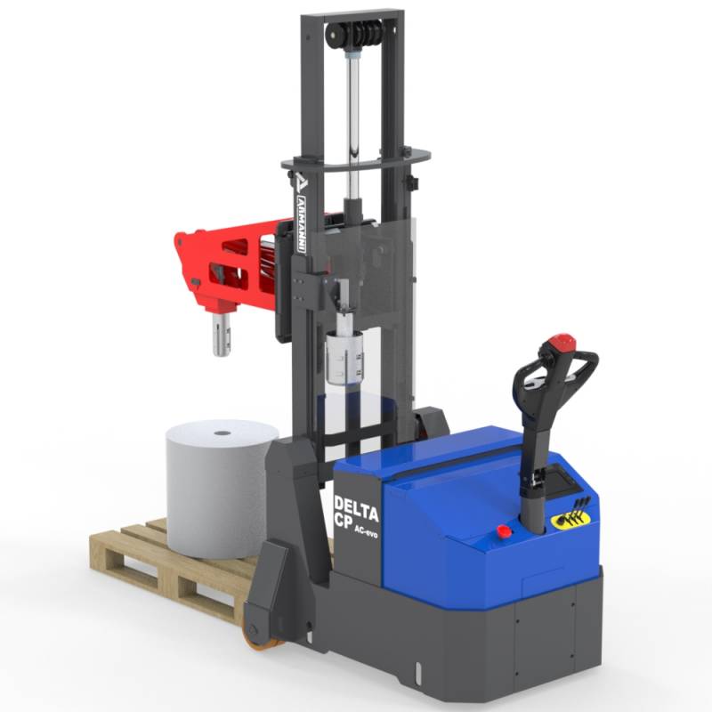 Delta CP - Mandrel, è un carrello controbilanciato extrarobusto con manipolatore per bobine delicate. Rappresenta la soluzione ideale per chi deve manipolare bobine delicate movimentandole tramite anima interna. Il basamento contrappesato permette a Delta CP - Mandrel di approcciare la bobina su pallet da qualsiasi angolazione consentendo un’agilità di manovra unica sul mercato. Il sistema di presa della bobina tramite manipolatore a retrazione automatica garantisce sempre la massima sicurezza mantenendo la presa anche in caso di batteria esausta o in caso di interruzione accidentale di corrente. Delta CP - Mandrel è dotato di sistema di guida con servosterzo di serie ed è progettato per la presa e la rotazione di bobine fino a 90° per agevolare le operazioni di carico e scarico di macchinari per impacchettamento.
