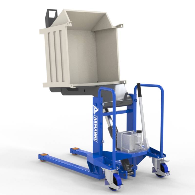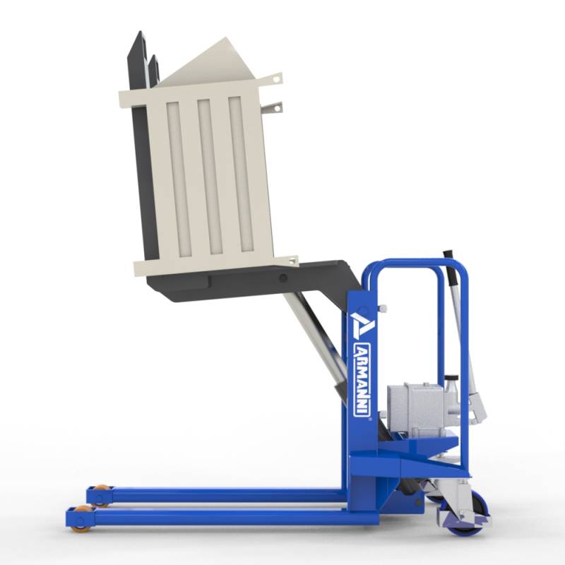 La pompa manuale agisce sull'inclinazione delle forche garantendo un'inclinazione massima 85°.