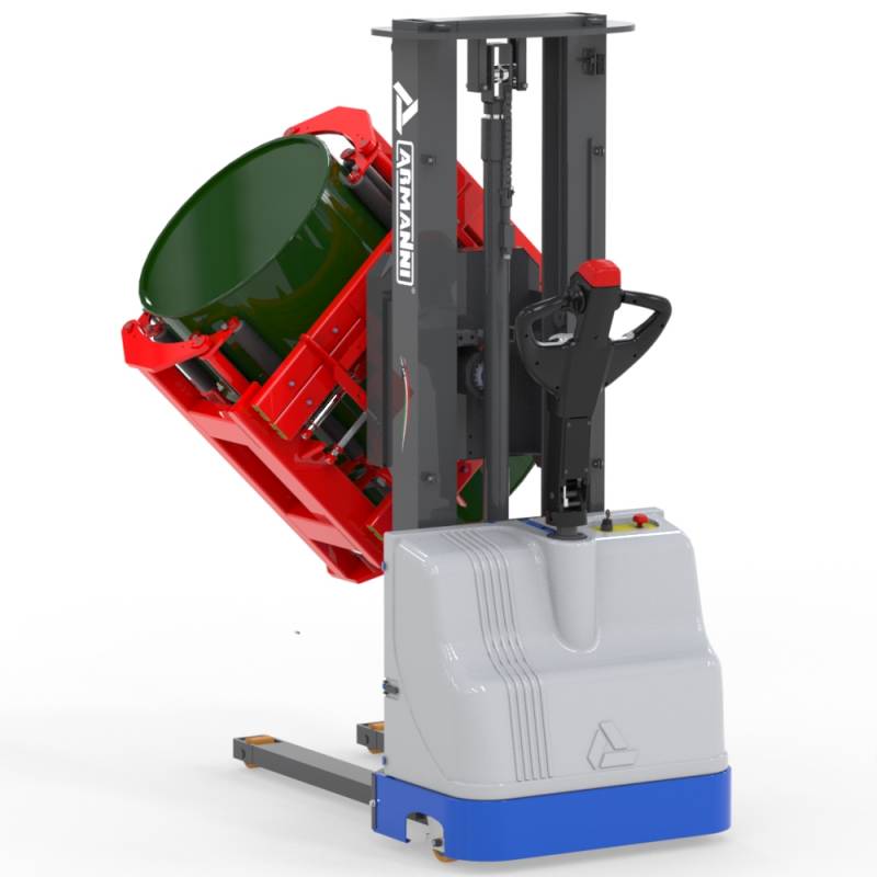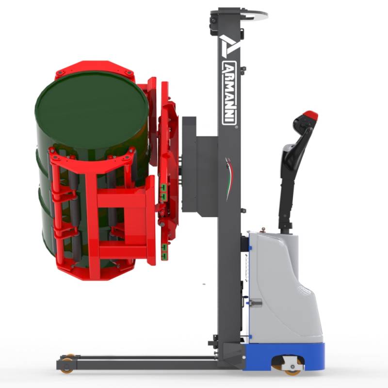 In configurazione standard, Master PRL-F è dotato di montante doppio per raggiungere altezze di svuotamento fino a 2500 mm, zanche anteriori a misura euro-pallet rendendo così di fatto possibile la presa del fusto direttamente da euro-pallet, ma su richiesta possono essere allargate per consentire la presa da terra.
