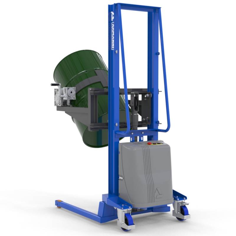 Lo specifico sistema “girafusti” installato sulla macchina consente all’operatore di gestire e regolare manualmente tutte le operazioni connesse alla movimentazione di fusti e contenitori cilindrici di vario diametro. Il sollevamento elettro-idraulico consente di ridurre al minimo lo sforzo per l'operatore durante il sollevamento.