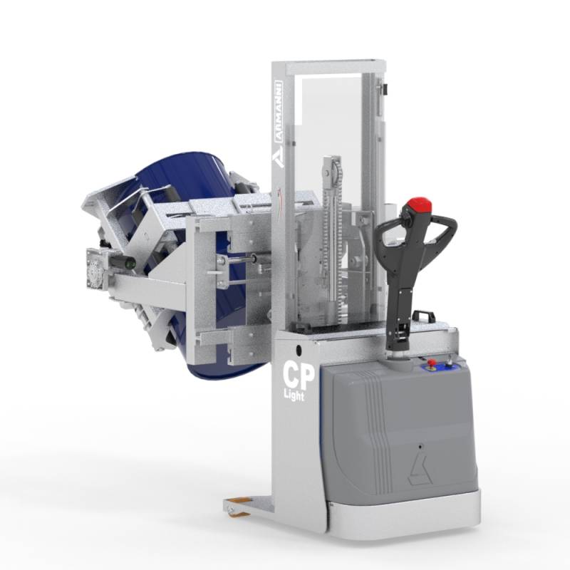 CP Light PRF-F Inox è un carrello ultracompatto contrappesato con pinza con rotazione frontale per lo svuotamento di fusti. Le dimensioni compatte di solo 1 m² d'appoggio a terra consentono la massima agilità anche negli spazi e nei corridoi più angusti. Grazie alla configurazione contrappesata, senza zanche d'appoggio anteriori, è in grado di approcciare il pallet ad ogni angolazione; questa configurazione consente inoltre di prendere il fusto direttamente da terra.