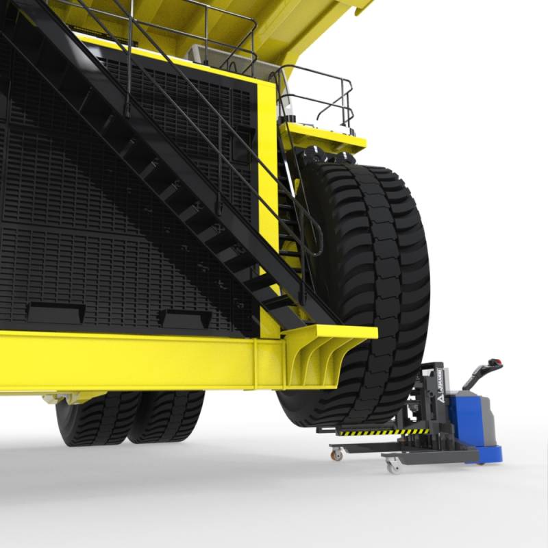 Questo 4VIE speciale è progettato esclusivamente come supporto per la delicata operazione di cambio pneumatici di mezzi importanti come camion, escavatori o pale meccaniche. La possibilità di muoversi in 4 direzioni garantisce un allineamento perfetto con il mozzo della ruota e l'attrezzatura su misura consente all'operatore di sollevare e ruotare lo pneumatico per centrare i fori dei bulloni della ruota. Il montante accorciato contribuisce ad incrementare la visibilità durante l'operazione di centraggio. Si tratta di un prodotto che può essere customizzato sulla base del range di diametri degli pneumatici da movimentare. E' il partner ideale per numerose aziende del settore automotive: dai produttori, alle aziende che eseguono la manutenzione su mezzi gommati.