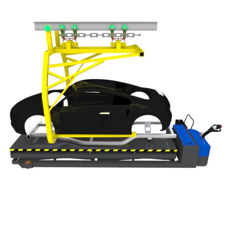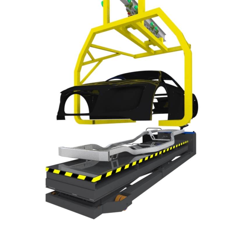 Le tavole elevatrici motorizzate vengono utilizzate nel settore automotive e in particolare nel reparto prototipazione per svolgere l'operazione di "marriage" ossia l'unione del telaio con la carrozzeria e verificare incompatibilità o modifiche da fare prima del lancio in produzione. Questa operazione, durante la prototipazione, deve essere svolta più volte sullo stesso veicolo per questo motivo non è possibile realizzare un impianto automatizzato come quello delle linee di produzione. Grazie a questa tavola l'operatore è in grado di posizionarsi sotto la carrozzeria del prototipo e sollevare il telaio per completare l'unione con il minimo sforzo e la massima precisione nel pieno rispetto delle normative di sicurezza. Questo prodotto può essere personalizzato nelle dimensioni del pianale, della corsa di sollevamento e nella portata. La guida a timone può, su richiesta, essere dotata di servosterzo o può essere integrata con radiocomando senza fili. Sulle soluzioni con maggior portata il corpo di trazione oscillante, separato dal telaio di sollevamento, garantisce sempre la massima trazione anche in condizioni di pavimentazione non perfettamente liscia.