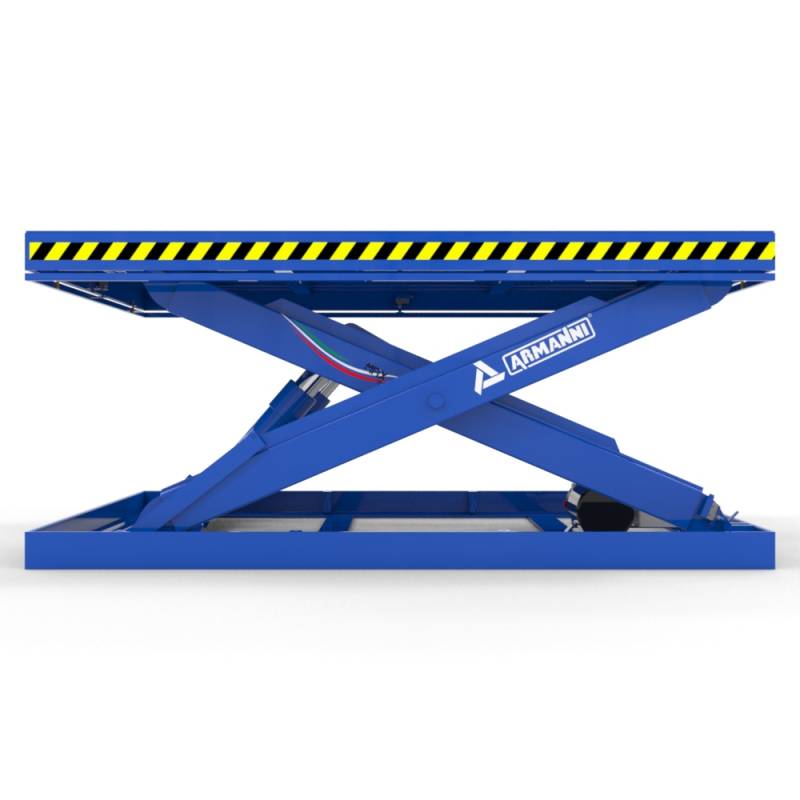 L'equipaggiamento della tavola con sollevamento motorizzato, tramite centralina elettro-idraulica alimentata dalla rete, consente anche nella configurazione standard l'agevole e sicuro sollevamento di carichi fino a 2000 Kg.
