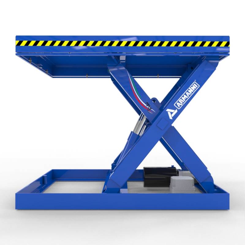 L'equipaggiamento della tavola con sollevamento motorizzato, tramite centralina elettro-idraulica alimentata dalla rete, consente anche nella configurazione standard l'agevole e sicuro sollevamento di carichi fino a 3000 Kg