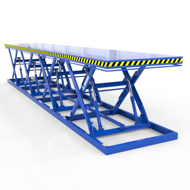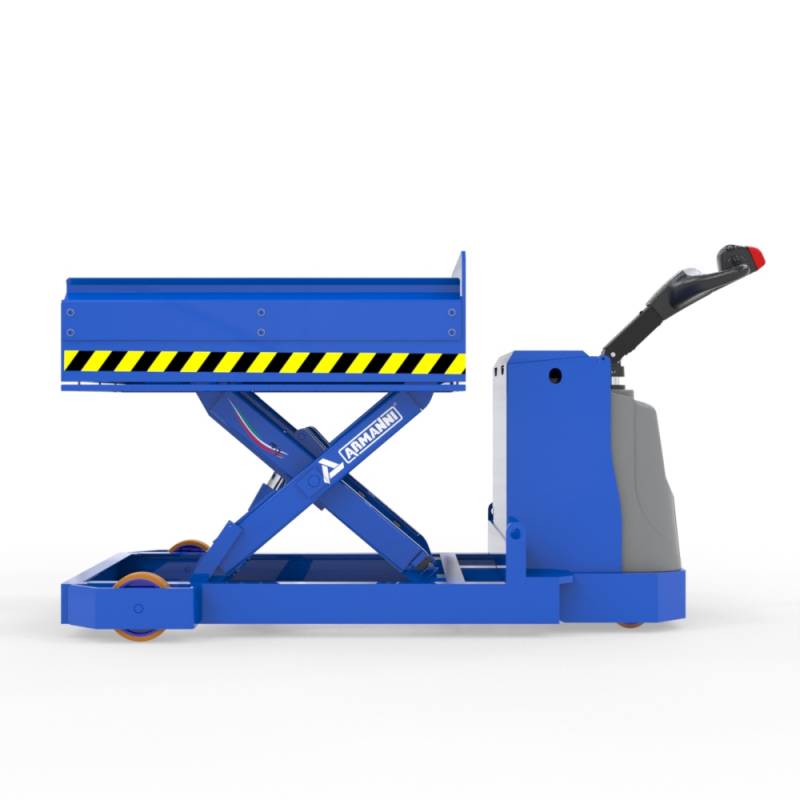 TEM AC-evo per stampi è una tavola elevatrice motorizzata con pianale con rulliera a scomparsa progettato specificatamente per l'attrezzaggio di presse idrauliche, la movimentazione stampi e la movimentazione di carichi non pallettizzabili senza l'ausilio di altri mezzi di sollevamento come gru o carriponte. La speciale rulliera a scomparsa consente di far scorrere il carico sul pianale a tavole ferma agevolando il carico e scarico dello stampo quando i rulli sono alzati, e consente un sicuro ancoraggio del carico durante la marcia quando i rulli sono abbassati. Speciali sensori di sicurezza consentono la movimentazione della tavola solo a rulli completamente abbassati ossia quando il carico è saldamente ancorato al pianale della tavola stessa. Questo prodotto può essere ampiamente personalizzato in portata, dimensioni del piano e altezza di sollevamento.