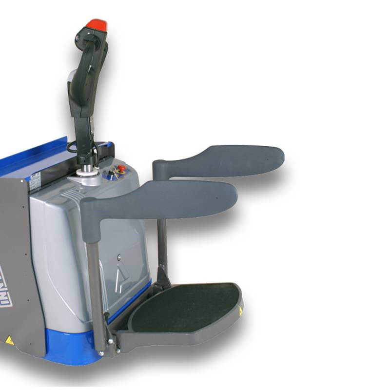 Dank der großen Anzahl an optionalem Zubehör ist es möglich, eine maßgeschneiderte Maschine für die Bedürfnisse jeder Arbeitsumgebung herzustellen; insbesondere mit dem klappbaren Trittbrett ist es möglich, eine geringe Ermüdung des Bedieners (Person an Bord) und hohe Geschwindigkeiten zur Abdeckung der Gänge zu gewährleisten, vor allem wenn sie zusammen mit anderen Geräten wie z. B. einem verbesserten Antriebsrad und Sicherheitsbrettern für den Bediener verwendet werden (Zusatzausstattung).