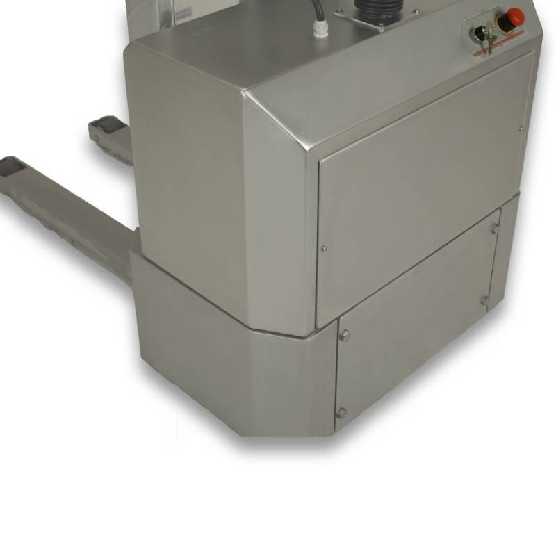 Der Rahmen und die Komponenten aus Edelstahl machen den Stapler besonders geeignet für Arbeiten in Umgebungen, die durch Feuchtigkeit, Kondensation, Pulver und Kochsalzlösungen oxidiert werden.