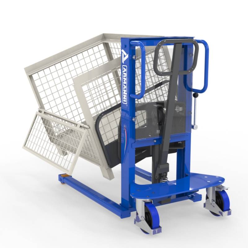 Alfa MRL - evo stellt eine spezifische Lösung für seitliche Kippanforderungen und die entsprechende Entleerung von Körben und Tanks dar. Der Alfa MRL - evo ermöglicht das Heben von Lasten bis zu 400 kg. und eine seitliche Neigung mit einem maximalen Winkel zwischen -20° und +20°.