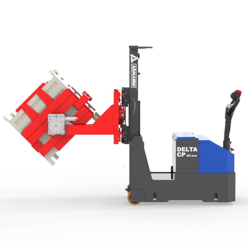 Der Delta CP PRF-C ist ein ausbalancierter Wagen, der mit einer vorne montierten Absetzzange ausgestattet ist. Dank seiner Konfiguration ohne vordere Stützbeine kann er von jeder Seite an den Aufbau herangefahren werden, was den Platzbedarf effektiv reduziert und die Arbeit in einem kleineren Arbeitsbereich ermöglicht. Die serienmäßige Deichsellenkung mit Servolenkung bietet dem Bediener eine noch nie dagewesene Ergonomie und Benutzerfreundlichkeit.
