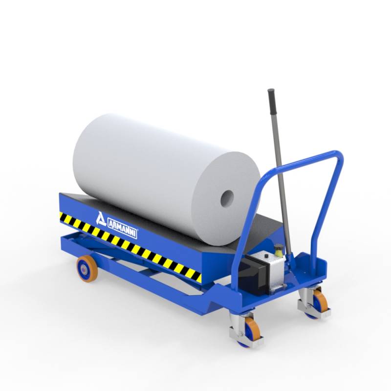 TM può essere una valida alleata nelle diverse fasi di lavorazione in quanto abbina le caratteristiche di piano sollevabile alla possibilità di essere facilmente movimentata tramite spinta manuale sull'apposito maniglione, garantendo spostamenti precisi e sicuri.