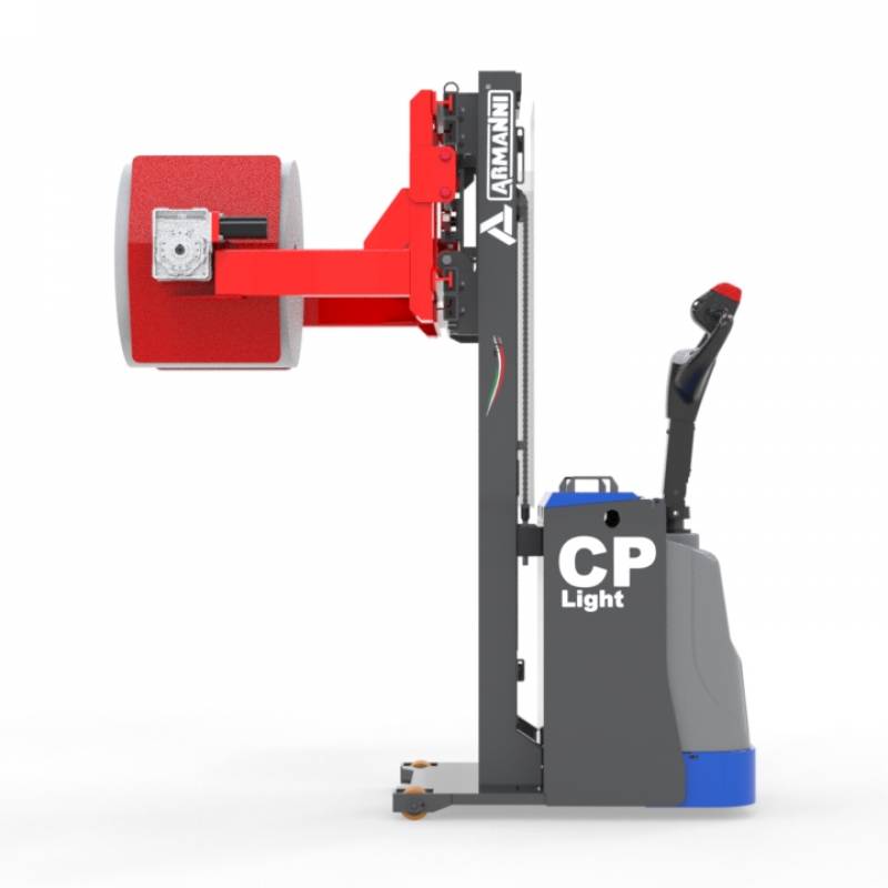 Der CP Light PRF-B ist ein ultrakompakter Wagen mit Gegengewicht und drehbarem Frontgreifer für das Rollenhandling. Die kompakten Abmessungen von nur 1 m² Standfläche ermöglichen maximale Beweglichkeit auch auf engstem Raum und in Gängen. Dank seines Gegengewichts ohne vordere Stützbeine kann er sich der Palette aus jedem beliebigen Winkel nähern; der auf den Rollentyp abgestimmte Greifer ermöglicht es, die Rolle zu greifen, um 360° zu drehen (oder alternativ von 0° auf 90° zu begrenzen) und in die Maschine einzuführen.