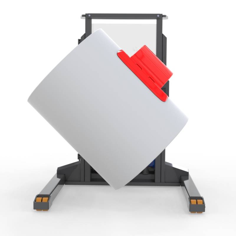 Der Rahmen mit vergrößerten Klemmen ist speziell für das Greifen und Drehen von Rollen mit einem Gewicht von bis zu 1200 kg ausgelegt.