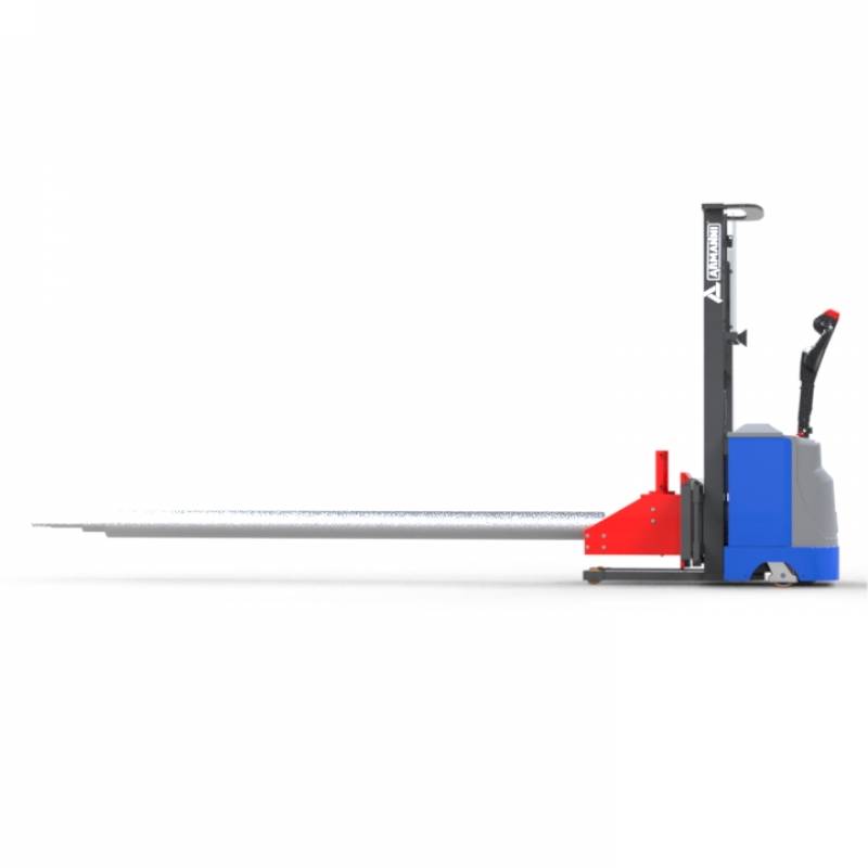 Der DELTA E-SHAFT AC-evo ist ein Gabelstapler, der ausschließlich für das Greifen und den Transport von Biegewellen entwickelt wurde. Dank dieses Produkts ist der Bediener in der Lage, den Vorgang des Herausziehens oder Einsetzens der dehnbaren Welle aus der Rolle sicher, einfach und unabhängig durchzuführen. Dank der Proportionalsteuerung, des Übersetzers, der hochauflösenden Kamera und des Laserpointers ist der Bediener in der Lage, das Greifen der Welle mit minimalem Aufwand durchzuführen, wodurch die Produktivität gesteigert und die für diesen Vorgang typischen Risiken minimiert werden.