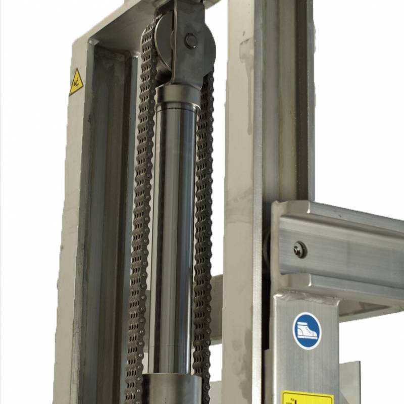Le Delta E AC-evo 125/16 INOX est doté d'une structure de levage à mât extrudé à un étage qui permet de soulever des charges jusqu'à 1200 kg à une hauteur maximale de 1600 mm.