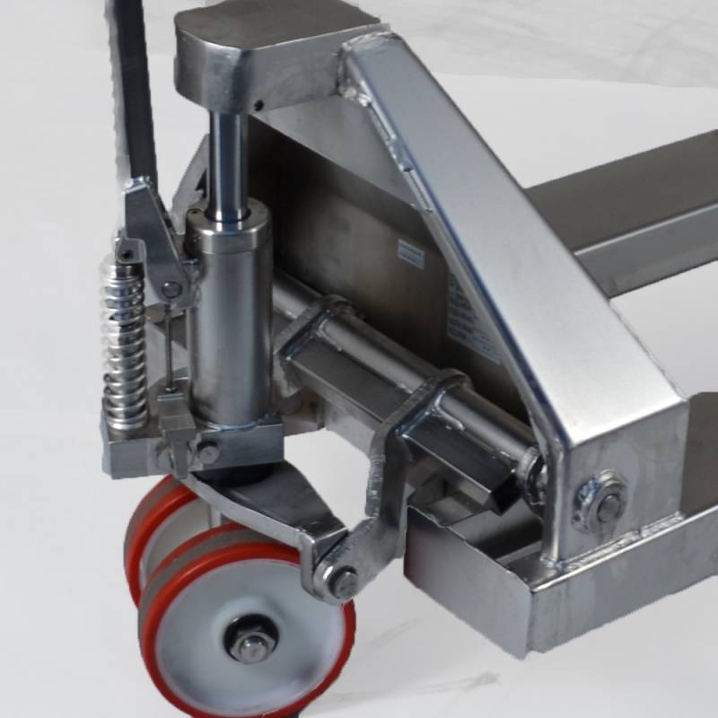 La construction en acier inoxydable rend ce transpalette particulièrement adapté aux environnements de travail sujets à l'oxydation en raison de la présence d'humidité, de condensation, de poussière et de solutions salines.