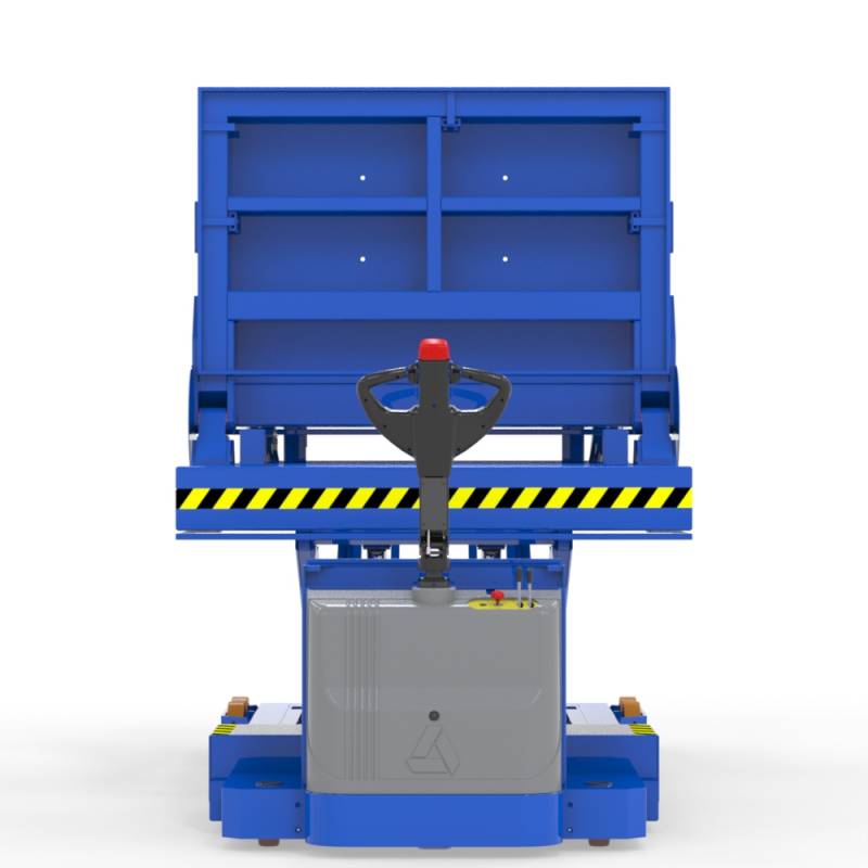 TEM AC-evo avec élévateur combine la fonction de basculement de la charge typique des élévateurs ou des tables basculantes avec un corps de traction motorisé qui permet à l'élévateur de se déplacer, évitant ainsi l'utilisation d'un chariot élévateur. Grâce à la possibilité de manutention électrique, ce produit est également particulièrement utile pour les entreprises qui manipulent des produits semi-finis dans les différentes étapes de la production.