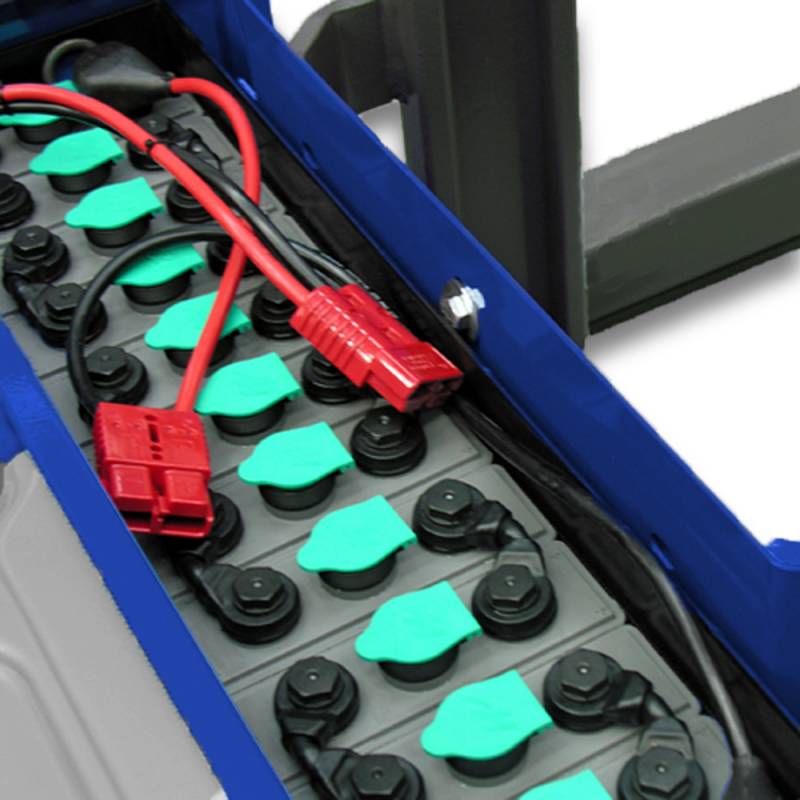 Vano batteria apribile lateralmente con carrellino aggiuntivo per effettuare un rapido cambio batter...