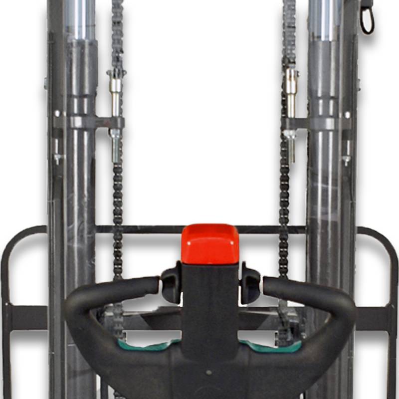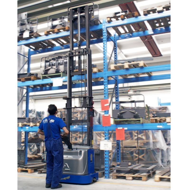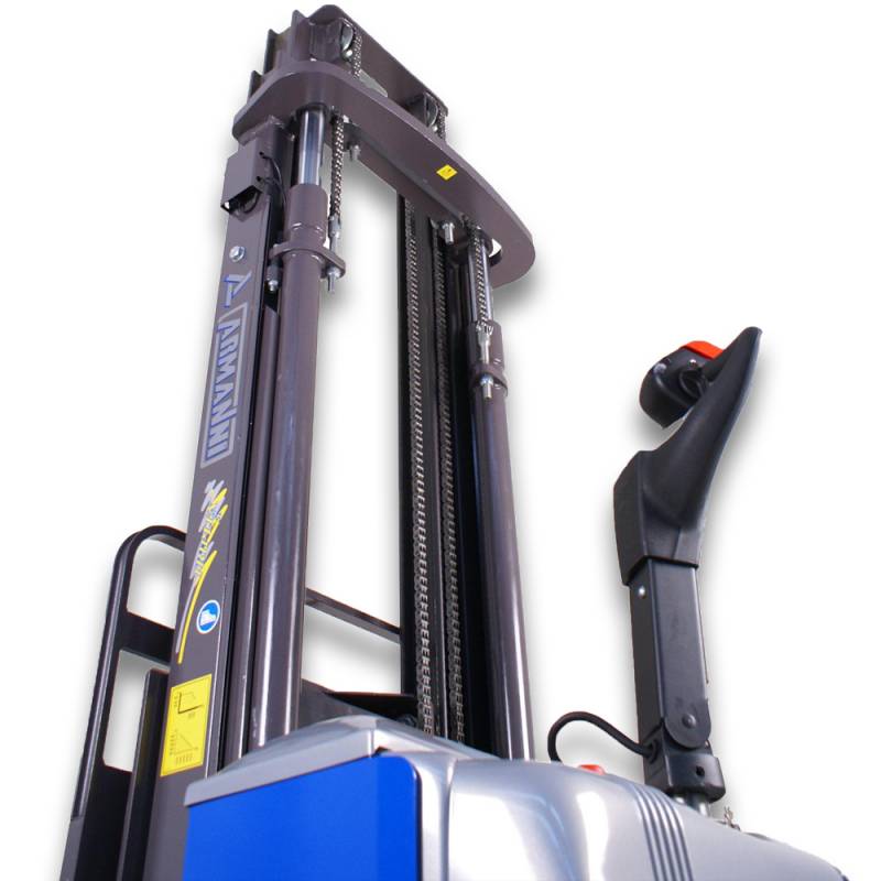 Il particolare montante triplex a tre stadi di sollevamento consente, nonostante gli ingombri ridotti, di servire le scaffalature più alte sempre in condizioni di massima stabilità strutturale e sicurezza.