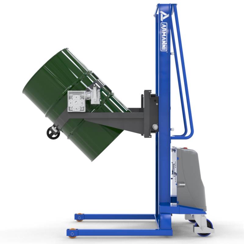 Lo specifico sistema “girafusti” installato sulla macchina consente all’operatore di gestire e regolare manualmente tutte le operazioni connesse alla movimentazione di fusti e contenitori cilindrici di vario diametro. Il sollevamento elettro-idraulico consente di ridurre al minimo lo sforzo per l'operatore durante il sollevamento.