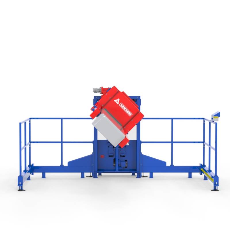 AGV Tilting Station è una stazione fissa di ribaltamento progettata per la manutenzione di AGV e AGC ( Automated guided cart) per garantire la massima sicurezza per l'operatore. Il sistema di bracci consente una rotazione a 360° dell'AGC al fine di consentire la manutenzione dello stesso su ogni lato. L'altezza di sollevamento può essere regolata in un range ergonomico per l'operatore il quale può azionare i comandi per la salita e la rotazione all'esterno del perimetro di sicurezza. Prima di depositare l'AGC a terra, una numerosa serie di sensori impedisce la discesa se i bracci non sono perfettamente nella posizione 0°. Questo prodotto è compliance alla normativa UNI EN ISO 1493 per il sollevamento dei veicoli.