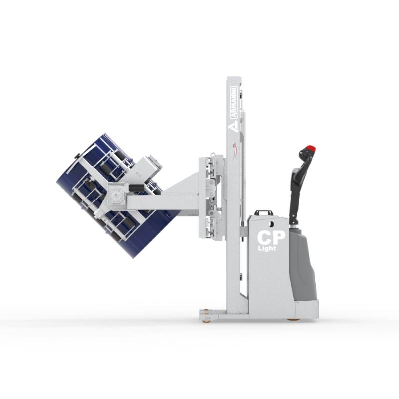 CP Light PRF-F Inox è un carrello ultracompatto contrappesato con pinza con rotazione frontale per lo svuotamento di fusti. Le dimensioni compatte di solo 1 m² d'appoggio a terra consentono la massima agilità anche negli spazi e nei corridoi più angusti. Grazie alla configurazione contrappesata, senza zanche d'appoggio anteriori, è in grado di approcciare il pallet ad ogni angolazione; questa configurazione consente inoltre di prendere il fusto direttamente da terra.