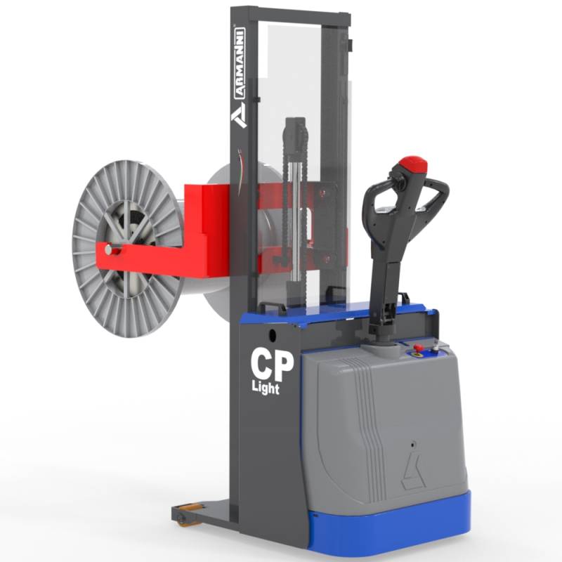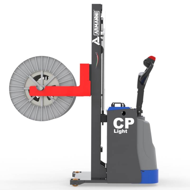 CP Light FS è un carrello full electric contrappesato ultracompatto con forche speciali sagomate a V (a sella), progettato per la presa di bobine tramite albero per il carico e scarico da macchinario. Le forche speciali a sella vengono realizzate su misura in base alla larghezza dell'albero e al diametro della bobina, rendendo di fatto CP Light FS un prodotto su misura per il carico da movimentare. Questa caratteristica contribuisce ad un miglioramento dell'efficienza, della produttività e delle condizioni di sicurezza per gli operatori.