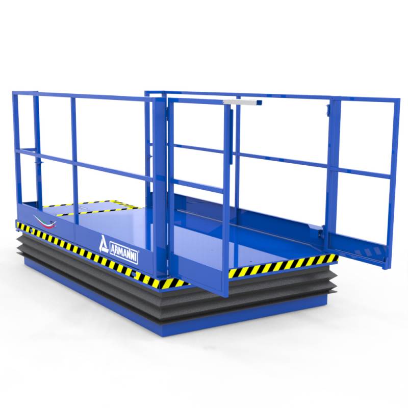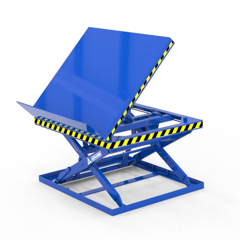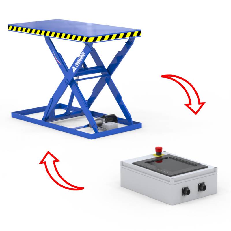 L'equipaggiamento della tavola con sollevamento motorizzato, tramite centralina elettro-idraulica alimentata dalla rete, consente anche nella configurazione standard l'agevole e sicuro sollevamento di carichi fino a 2000 Kg.